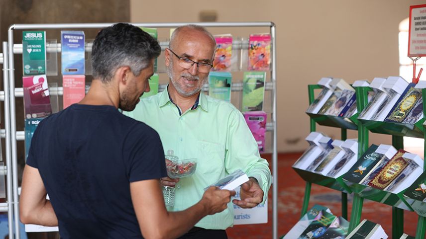 Ziyaretçilere dağıttıkları Kur'an-ı Kerim sayısının 26 bine ulaştığını anlatan Taşdemir, isteyenlere abdest almayı da öğrettiğini belirtti.