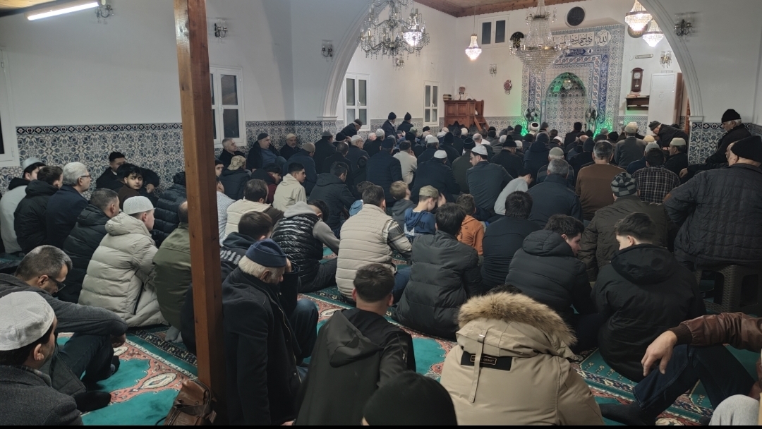 Bağlar Camii’nde düzenlenen Berat Kandili programına soydaşlar yoğun ilgi gösterdi. Caminin alt katında erkekler, üst katında ise kadınlar yer alırken, özellikle gençlerin programa gösterdiği katılım dikkat çekti.