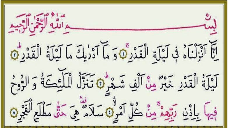 “Biz onu Kadir Gecesi indirdik. Kadir Gecesi nedir, bilir misin sen? Kadir Gecesi bin aydan hayırlıdır. Meleklerle Ruh o gece Rablerinin izniyle her iş için iner de iner. Tam bir esenliktir o gece, tâ tan yeri ağarıncaya kadar.” (Kadir Suresi)