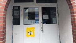 Kimliği belirsiz kişi ya da kişilerce cami kapısına gamalı haç çizildi.