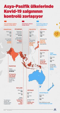 Hindistan, Malezya ve Japonya gibi ülkelerde Kovid-19 aşılamaları hızlı ilerlemesine rağmen son haftalarda vaka sayıları çoğalırken Tayland, Endonezya, Vietnam ve Myanmar'da aşılamalardaki yavaşlık vaka artışlarına sebep oluyor.