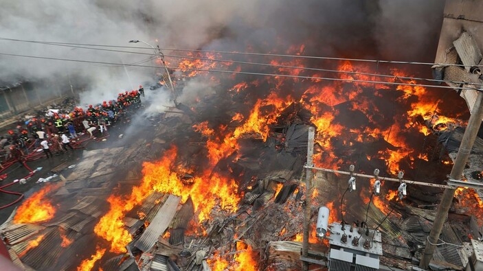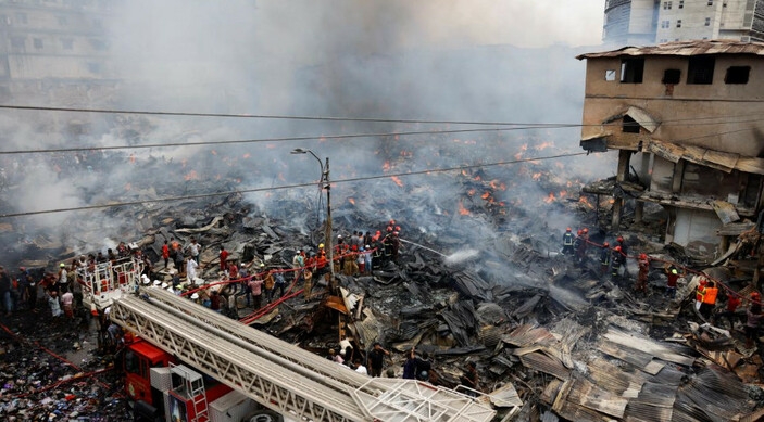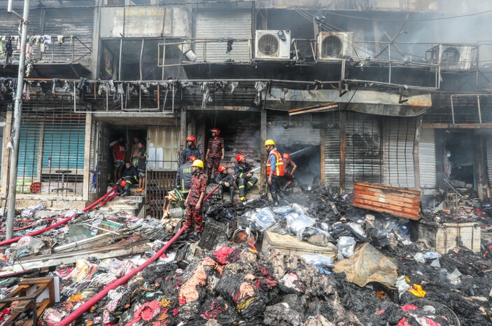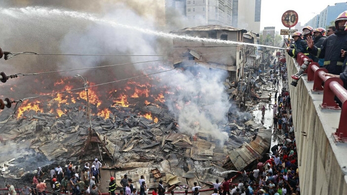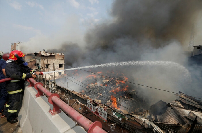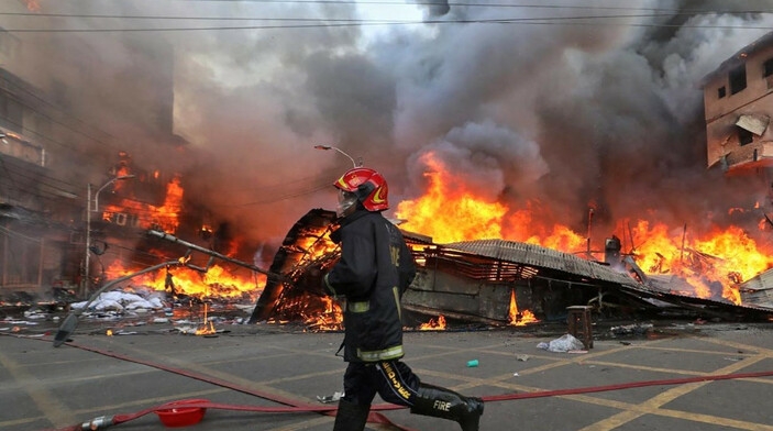 Bangladeş'in başkenti Dakka'da alevler yükseldi.