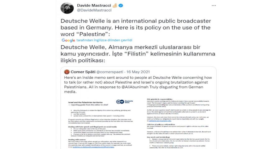 Bununla birlikte DW yönetimi çalışanların "Filistin Devleti" ifadesini de kullanmaması gerektiğini belirtti.