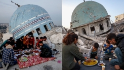 2020 yılında İsrail saldırılarında evleri tamamen yıkılan Filistinli Hamude Ebu Amre ve ailesi ramazanın üçüncü gününde boş arazide kurdukları yer sofrasında iftar yaparken; 2026'da Bureyc Mülteci Kampı'nda yaşayan Sana Ebu Abdu ailesi de iftarını İsrail saldırılarında yıkılan evlerinin enkazında açıyor.