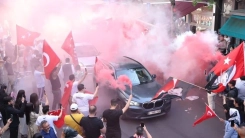 Almanya'da yaşayan Türk vatandaşları, Berlin'in Kreuzberg semti ve Kurfürstendamm Caddesi'nde toplanarak seçim başarısı nedeniyle Cumhurbaşkanı Erdoğan'ı kutladı.