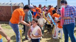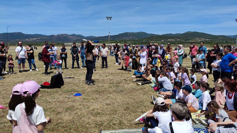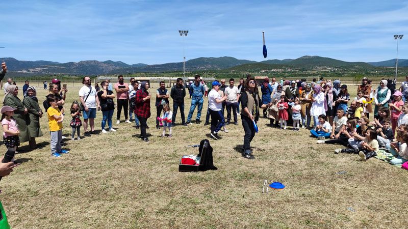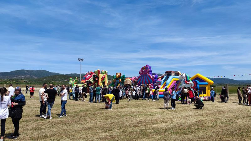Etkinliklere katılan çocuklar futbol sahasında yerleştirilen şişme oyun alanlarında oynayarak, farklı gösterileri izleyerek doyasıya eğlendiler.