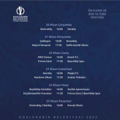 Maç programı 22 Nisan 2022 Cuma günü 17.30’da Fırtına Gücü ile Basırlıköy Spor arasında oynanacak 2. Ön Eleme Maçı ile devam edecek.