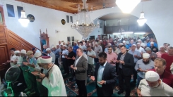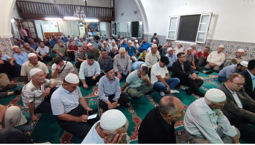 Yatsı namazı bay ve bayan soydaslari caminin alt ve üst katını tıklım tıklım doldurdu. Ezanın okunmasının ardından soydaşlar birlikte saf tutup namaz kıldılar.