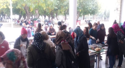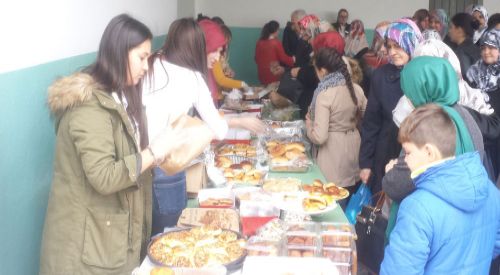 Okul bahçesinde düzenlenen etkinlikte birbirinde farklı ve lezzetli börek, çörek ve tatlı çeşitleri ile ekmek arası köfte satılırken, stantlarda giyim ve takı eşyaları da satışa sunuldu.