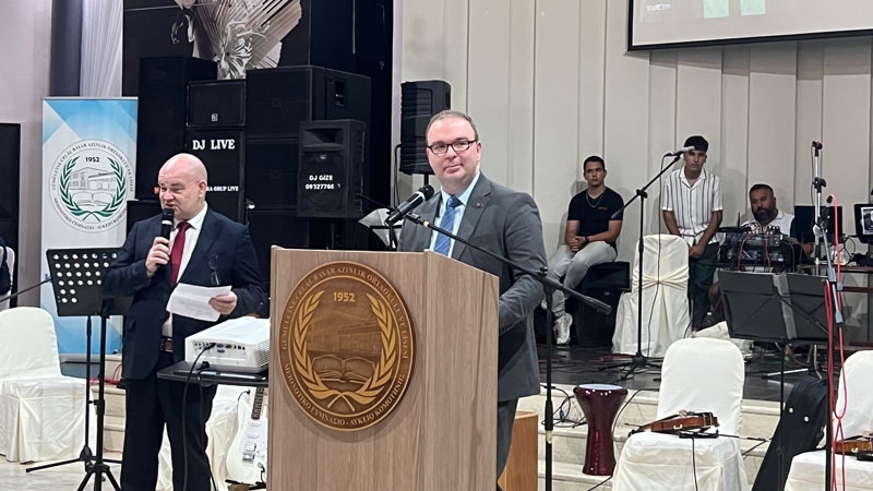 Mezuniyet töreninde son olarak soydaş öğrencileri anlamlı gecede yalnız bırakmayan Gümülcine Başkonsolosu Aykut Ünal söz aldı.
