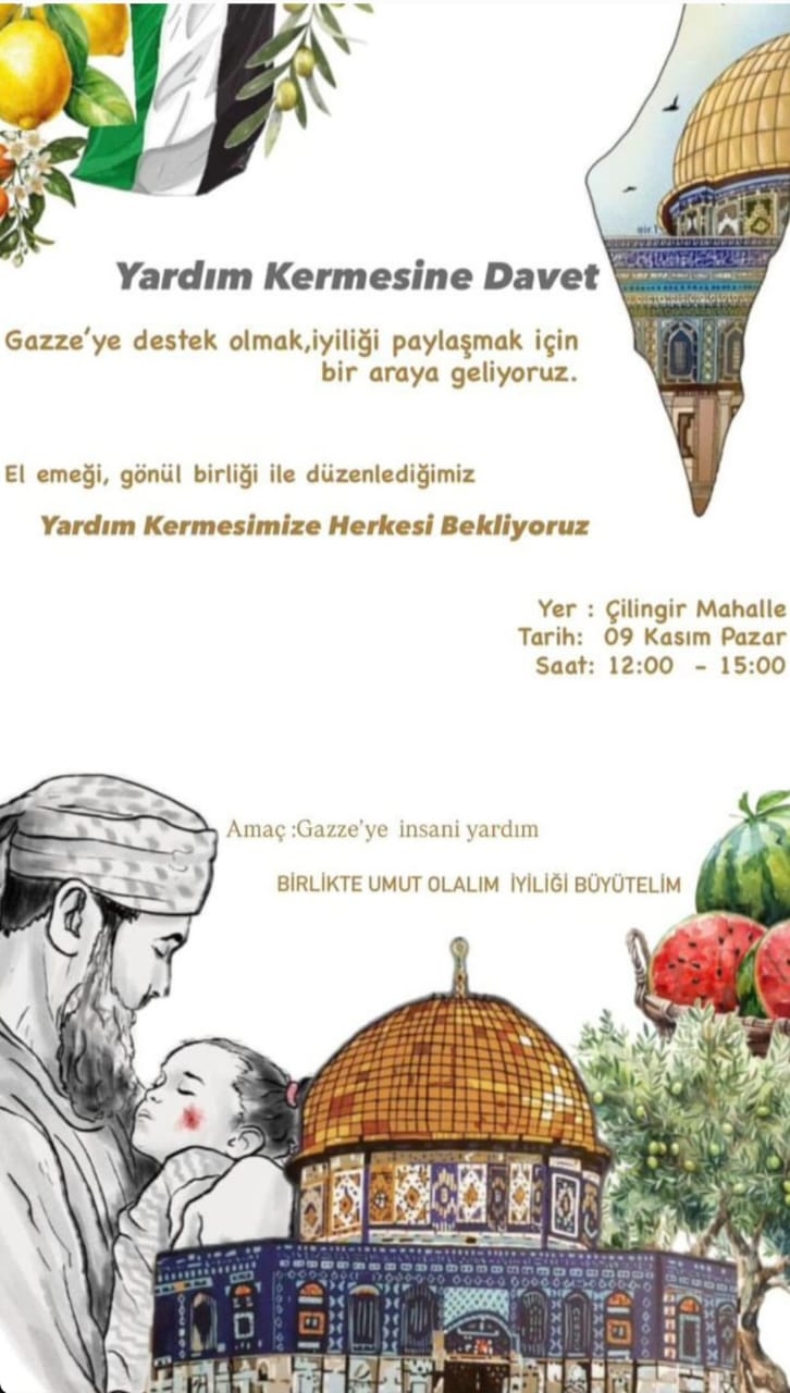 Çilingir Mahallesi’nde, Gazze’ye destek olmak ve iyiliği paylaşmak amacıyla bir yardım kermesi düzenleniyor. El emeği ürünlerin yer alacağı etkinlikte, toplanacak gelir Gazze’ye insani yardım olarak gönderilecek.