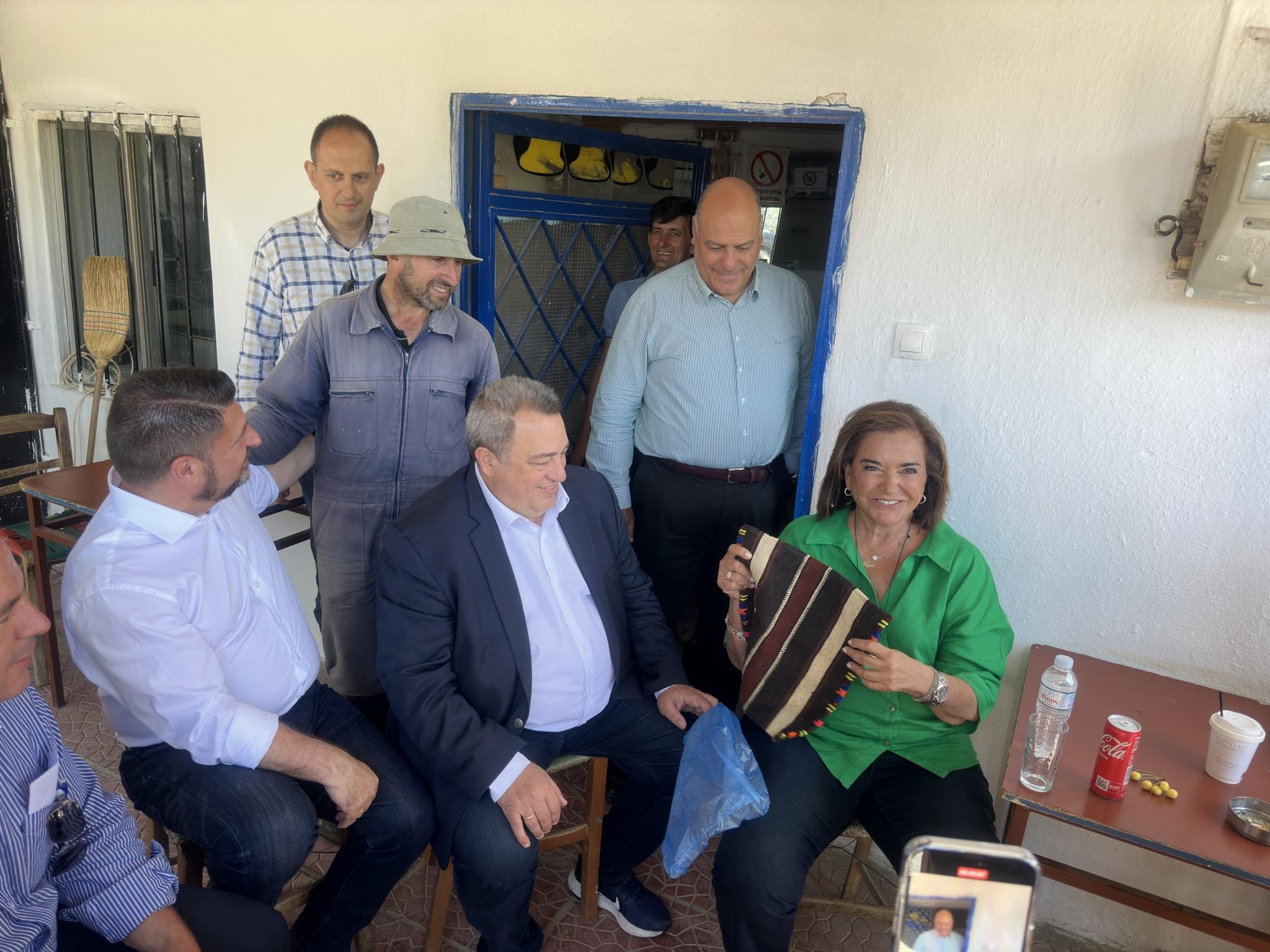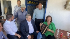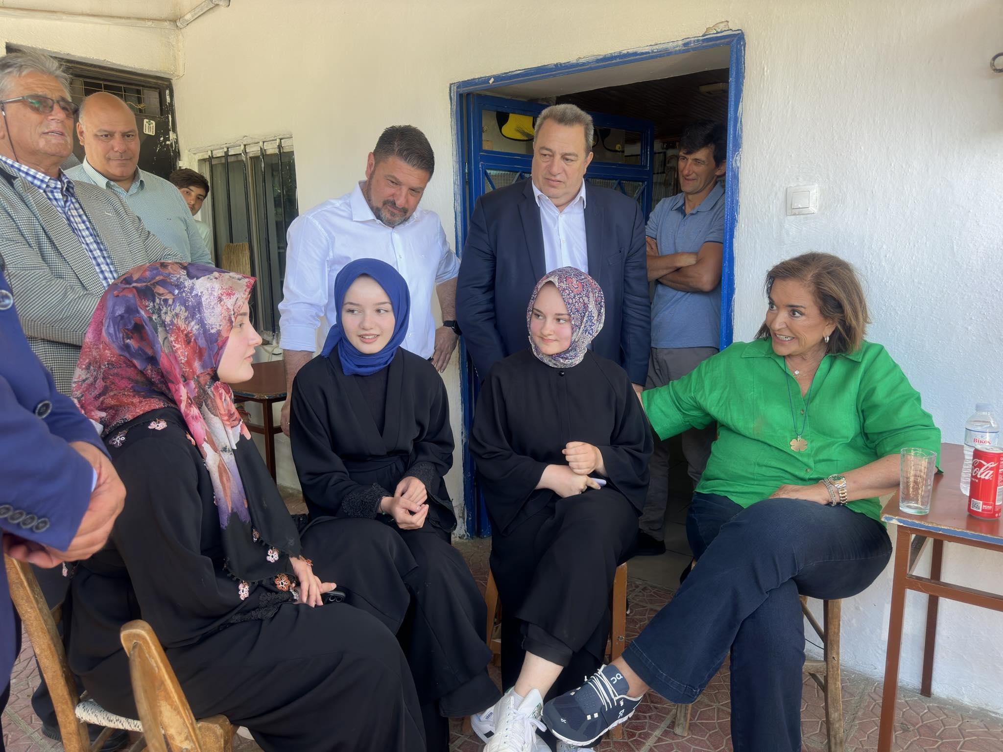 Bugün öğle saatlerinde Hacıören köyüne giden Bakoyanni, köy kahvesinde köyün genç kızlardan bazıları ve kahvede bulunan vatandaşlarla sohbet etti, gelecek seçimlerde onların desteğini istedi.
