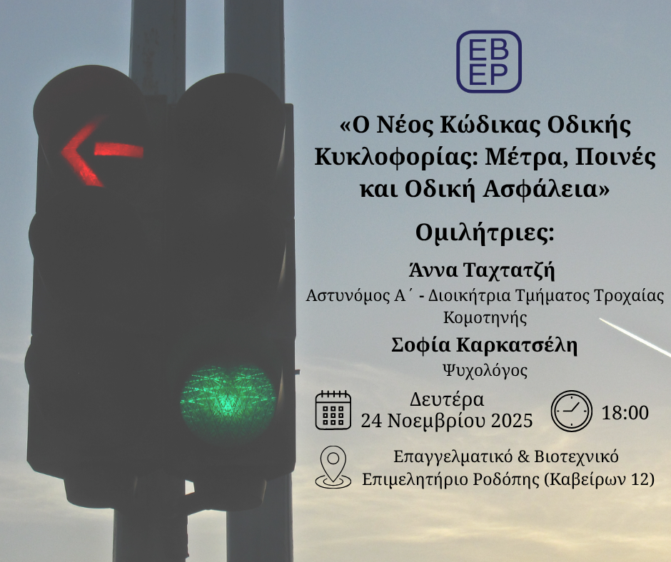 Rodop Ticaret ve Sanatkar Odası (EBEP) bugün, 24 Kasım 2025 Pazartesi “Yeni Karayolları Trafik Yasası: Önlemler, Cezalar ve Trafik Güvenliği” başlıklı bir bilgilendirme etkinliğine ev sahipliği yapacak.
