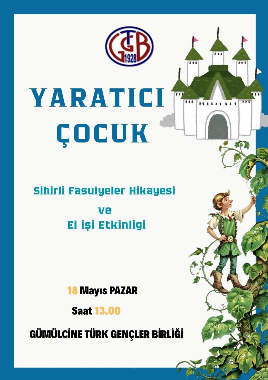 Gümülcine Türk Gençler Birliği'nde çocuklara yönelik etkinlikler devam ediyor. Çocuklar için bu kez "Yaratıcı Çocuk" isimli etkinlik düzenlenecek.