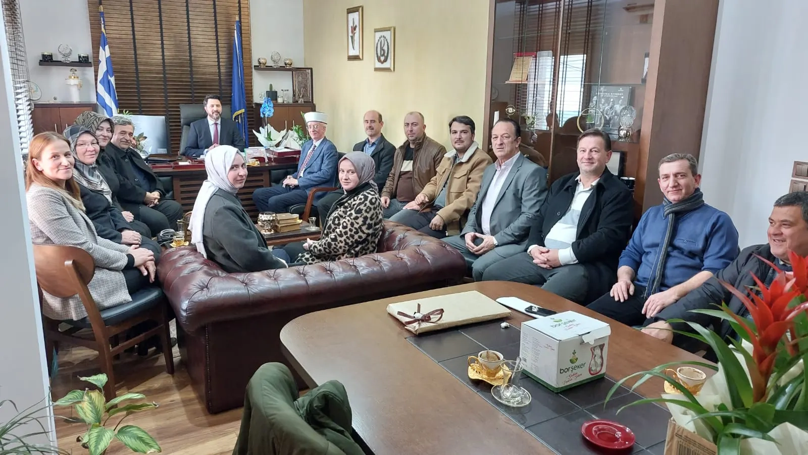 İskeçe Müftüsü Mustafa Trampa çalışma arkadaşlarıyla birlikte Mustafçova Belediyesine nezaket ziyareti gerçekleştirdi.