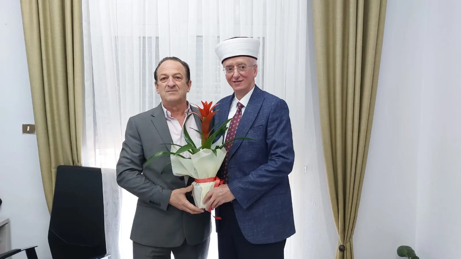 Müftü Mustafa Trampa da bu nazik ve samimi karşılamadan dolayı Başkan Ahmet Kurt’a teşekkür ederken, yeni göreve başlayan Başkan Yardımcılarını da tebrik ederek başarı dileklerini sundu. Çok verimli geçen görüşmenin sonunda Müftü ve Başkan karşılıklı olarak hediyeleştiler. Aynı zamanda Başkan yardımcılarına da çiçek takdiminde bulunuldu.