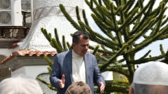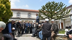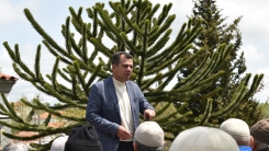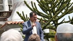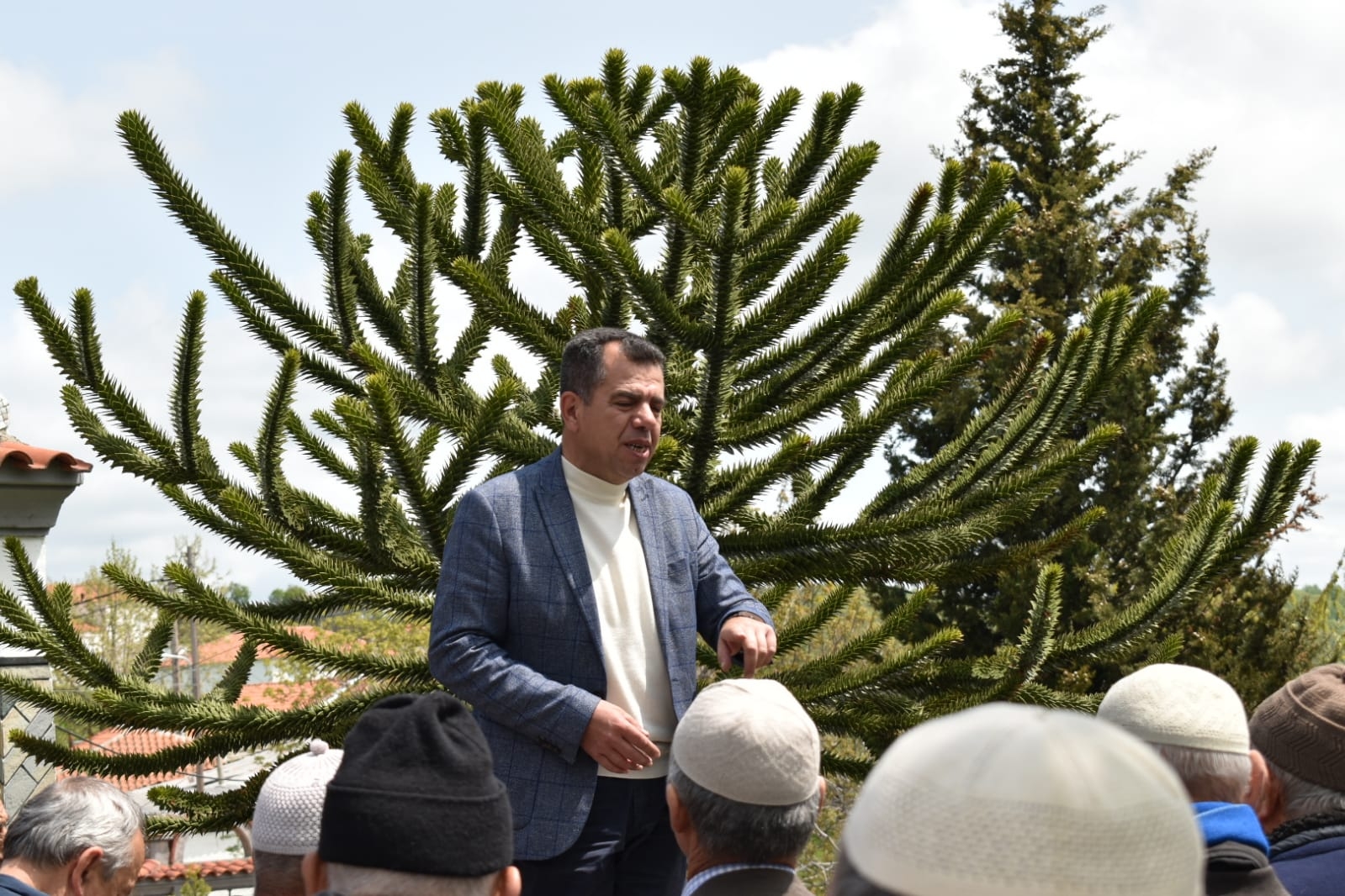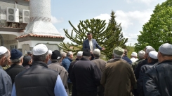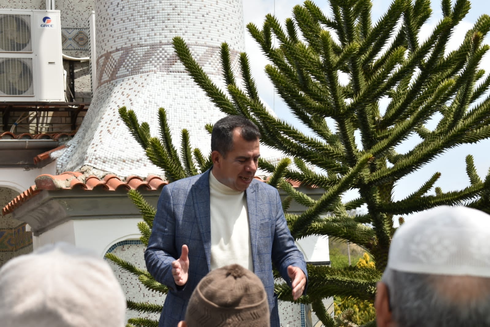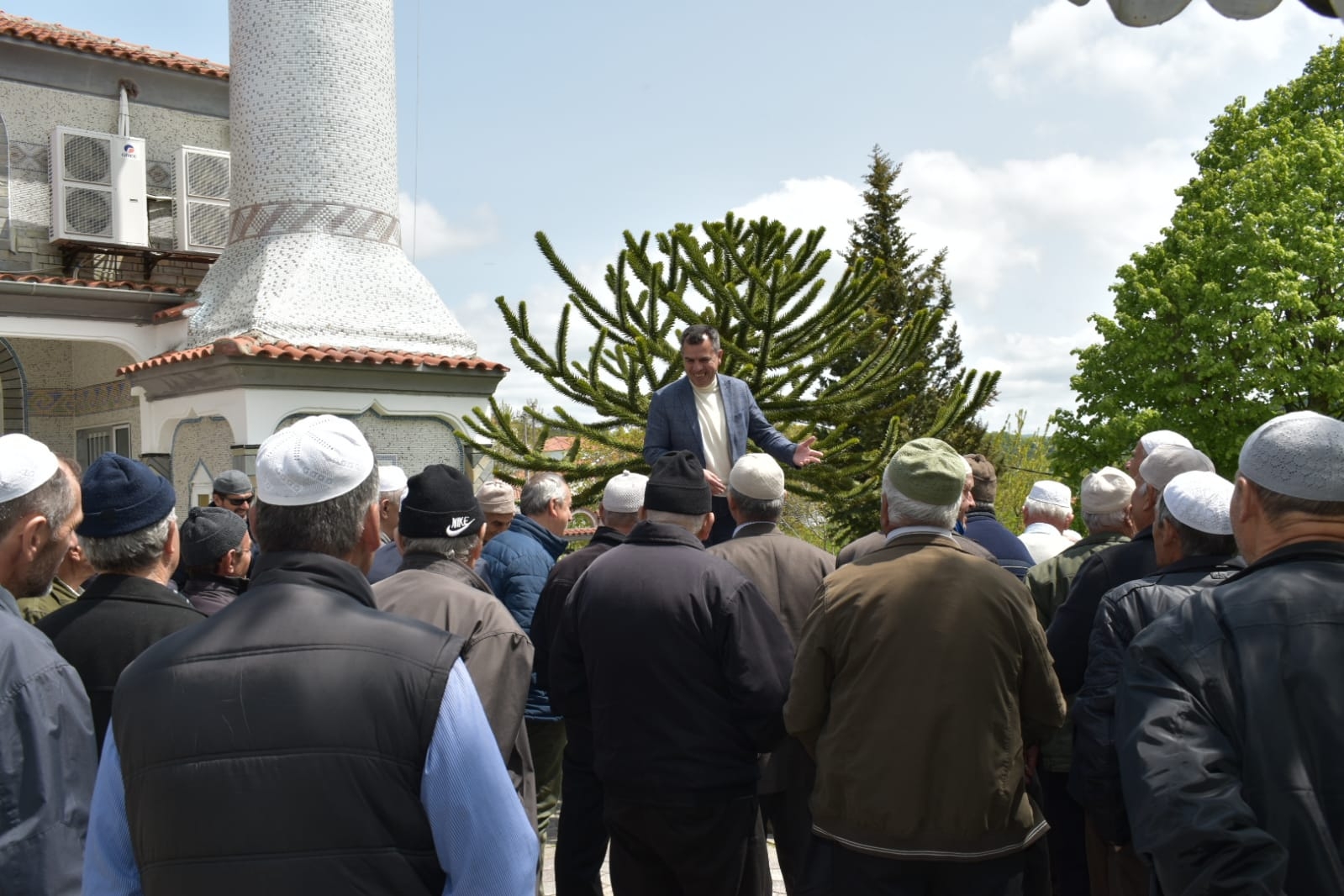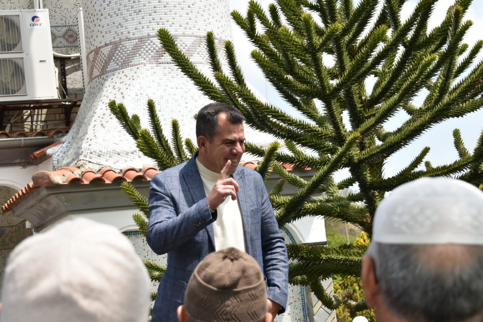 Cuma namazı çıkışında cami avlusunda soydaşlara konuşma yaparak, adaylığı, seçim çalışmaları ve hedefleri hakkında bilgiler verdi, onların desteğini istedi.