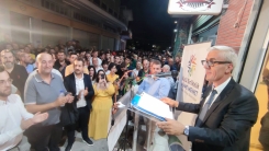 Büyük bir kalabalıkla yapılan açılışta Mehmet Mehmet, katılımcılara önce Yunanca daha sonra Türkçe konuşma yaptı.