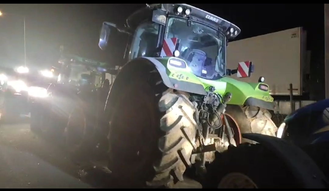 Traktörlerle sınıra giden çiftçiler, araçlarını yol kenarına park ettiler tırların geçiş yaptığı şeridi ise büyük balyalarla kapattılar.