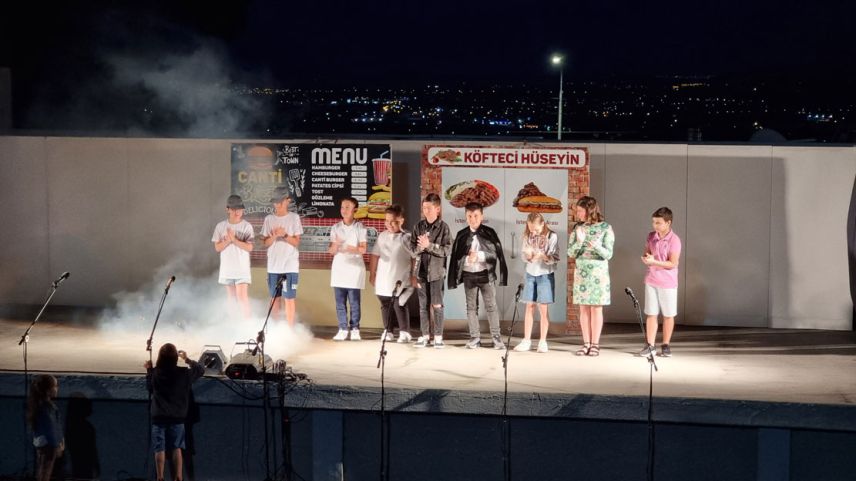 Minik tiyatrocuları yıl boyunca hazırlayan Senem Ahu Topuz ise kendilerine destek olan başta aileler olmak üzere herkese teşekkür etti.