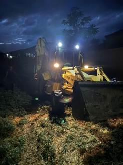 Belediye araçları iki köyde de görev başındaydı. Ancak belediye araçları yetersiz kaldı bu nedenle çalışmalara destem amacıyla dışarıdan başka araçlar da takviye edildi.
