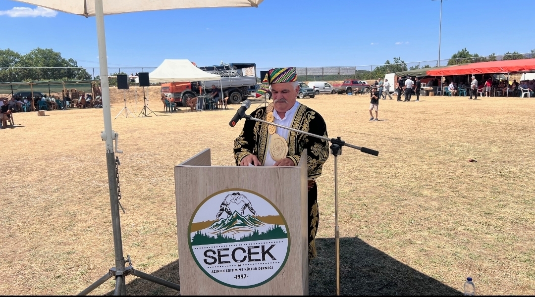 “7 asırlık bu kültürümüzün ve geleneğimizin devam edebilmesi için mutlaka birileri Ağalık görevini üstlenmesi gerekmektedir. Bu ilk şartlarımızdan biridir. 4 Ağustos 2024 tarihinde üstlenmiş olduğum bu görevi Allah’ın izniyle ve sizlerin de desteğiyle bugün tamamlamış olacağım. Bana destek veren başta kendi ailem olmak üzere, yanı sıra komşularım, akrabalarım, dostlarım, herkese ayrı ayrı teşekkür ederim. Herkesten Allah razı olsun. Biraz sonra başlayacak olan güreşlerimize, bütün pehlivanlarımıza başarılar diler, sakatlıksız bir gün geçirmelerini temenni ederim. Ayrıca kültürümüzü yaşatmak için bunu organize eden Seçek Azınlık Eğitim ve Kültür Derneği Başkanımız Necmettin Kahya ve tüm yönetim kurulu üyelerine, aynı şekilde Kozlukebir Belediye Başkanımız Erdem Hüseyin ve Mehrikoz Bölgesi sorumlusu Osman Osman’a teşekkür ederim.”