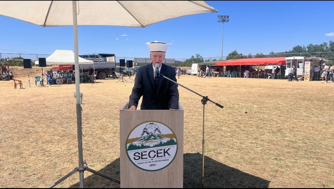 "Bugün burada kadim Seçek Yaylası’nın bereketli topraklarında ortak geçmişimizin ve kültürümüzün sembolü haline gelmiş bu anlamlı buluşmadan sizlerle bir araya gelmenin mutluluğunu yaşıyoruz. Seçek sadece bir yayla değildir. Seçek tarihtir, Seçek hatıradır, Seçek kültürdür, Seçek kimliktir. Bu öyle güçlü bir kimliktir ki, yaklaşık yedi asırdır Batı Trakya Türk Azınlığının birlikliğini, kardeşliğini, en saf duygularla yaşattığı bir anlayışın taşıyıcısı olmuştur. Seçek bu yönüyle sadece geçmişimizi değil, bu günümüzü ve yarınımızı da anlamlandıran bir değerdir. Seçek dediğimiz gibi bir kültürdür, bir mirastır, bir hazinedir ve hepsinden önemlisi İslamiyeti, tarihi ve bu toprakların ruhunu bilmeyenlerin yüzüne çarpan bir tokattır. İki gün önce Ruşanlarda bir yetkilinin yaptığı talihsiz konuşmayı büyük bir üzüntüyle dinledik. ‘Bugün Bektaşilik din olarak tanımanın mutluluğunu yaşıyor’ ifadesi kullanıldı. Hayır sayın yetkili: Bektaşilik bir din değildir, Bektaşilik İslamiyetle vardır ve İslamiyet’in özünden doğmuştur. Asırlardır bu topraklarda Rodop dağlarında Seyyid Ali Sultan ocağında en temiz en sahi haliyle yaşatılmaktadır. Ne sizin söylemlerinizle başlar, ne de sizin onayınıza ihtiyaç duyar, sizin ve birkaç marjinal hevesiyle sonradan icat edilmiş bir akım değil, bu milletin bu coğrafyanın imanla yoğrulmuş bir gerçeğidir. Siz ne derseniz deyin, ne yaparsanız yapın, bu topraklarda yüzyıllardır yeşeren birlik beraberlik ve inanç ruhu bu gün de bizlere güç veriyor. Bilin ki bunu siz istemezseniz de, çarpıtmaya çalışsanız da gelecek nesillere en temiz ve sahi şekliyle aktarılmaya devam edecektir. Bugün Batı Trakya Türk Azınlığı olarak bizler dilimizi, dinimizi, geleneklerimizi yaşatırken en çok da birlik ve beraberliğimize sahip çıkarak varlığımızı sürdürüyoruz. Çünkü biliyoruz ki, birliğimiz gücümüzdür. Burada dayanışma ruhunu Seçek’te görmek, yaşatmak ve genç nesillere aktarmak hepimizin ortak görevidir. Farklı düşüncelerimiz olabilir ama söz konusu Batı Trakya Türkünün haklı davası olduğunda tek kürek olmayı başaran bir toplumuz. Bugün burada atalarımızdan devraldığımız bu kıymetli mirasa sahip çıkmak, yarınlara da güçlü bir şekilde taşımak için bir aradayız. Rabbim birliğimizi beraberliğimizi daim eylesin.”