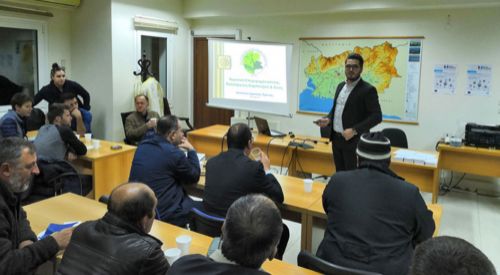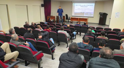 Aynı şekilde zeytin üretiminin de bütün aşamalarının detaylı sunumu gerçekleştirildi ve özellikle zeytinyağı üretiminde markalaşıp piyasaya katma değeri yüksek ürünler sunmanın yüksek potansiyeli olduğu vurgulandı. Kooperatifin tesisine zeytinyağı üretim ünitesi kurulduğu, bütün gerekli izinlerin alındığı ve zeytinyağı üretimine de başlanıldığı belirtildi. Bu kapsamda bütün zeytin üreticilerinin ürünlerini tesise getirip zeytinyağı üretimi gerçekleştirilebileceği dile getirildi ve Kooperatif ile irtibata geçilmesi için çağrı yapıldı.