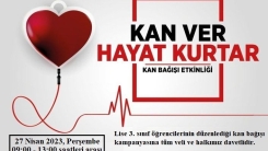 "KAN VER, HAYAT KURTAR" sloganı ile Lise 3 öğrencilerin öncülüğünde düzenlenecek etkinliğe tüm veliler ve halkımız katılabilir.