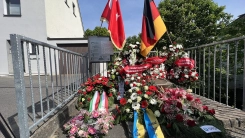 Almanya'nın Solingen kentinde, 29 Mayıs 1993'te ırkçılar tarafından kundaklanan ve 5 Türk'ün hayatını kaybettiği evin önünde anma töreni yapıldı.