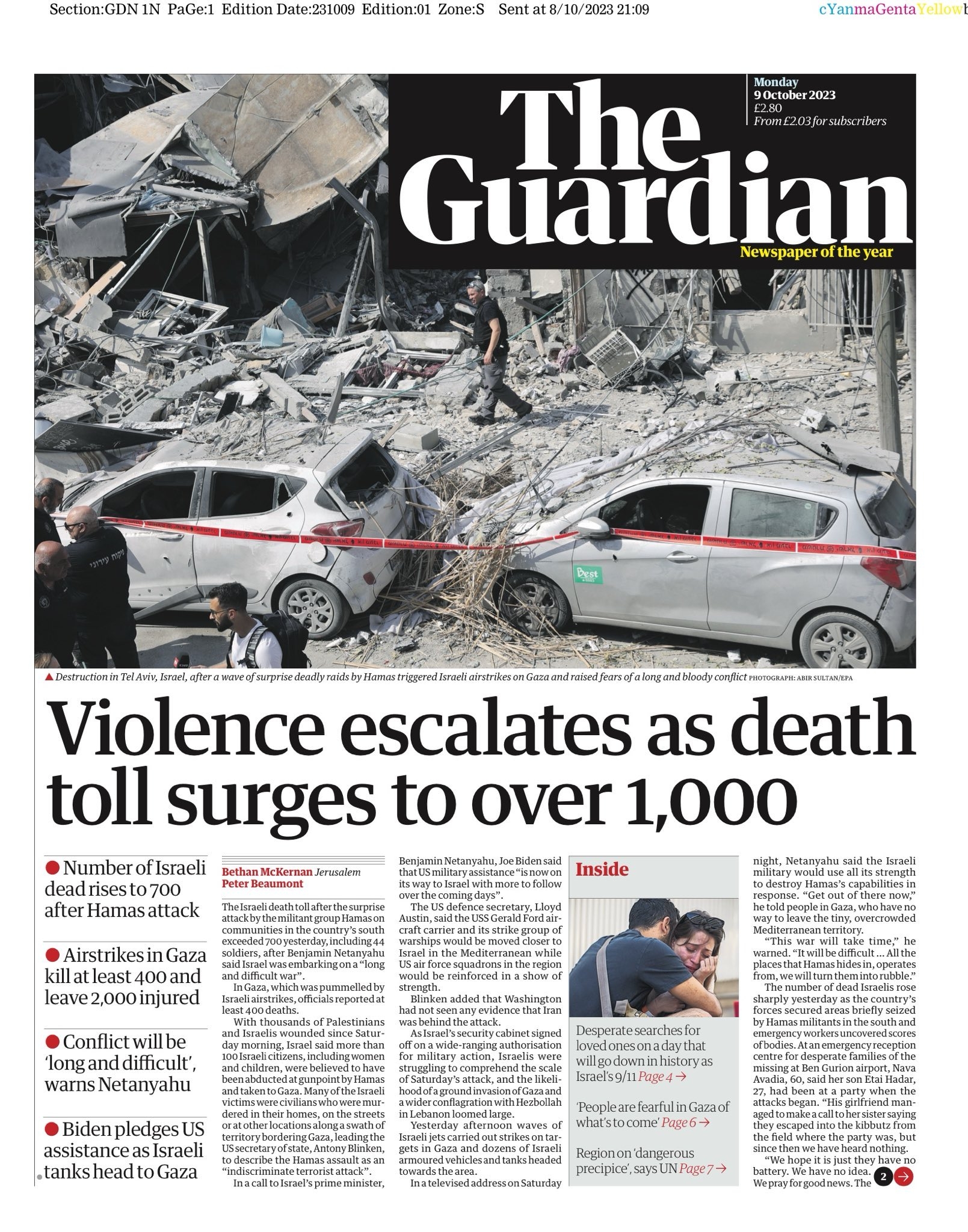 Fransa’da yayımlanan Le Monde gazetesi ise başlangıçta İsrail yanlısı bir çizgideyken, katliamın birinci yıldönümünde yayımladığı başyazısında İsrail’in Gazze saldırılarını “sınırsız intikam” olarak niteleyip sivillere yönelik ölümleri öne çıkardı.
