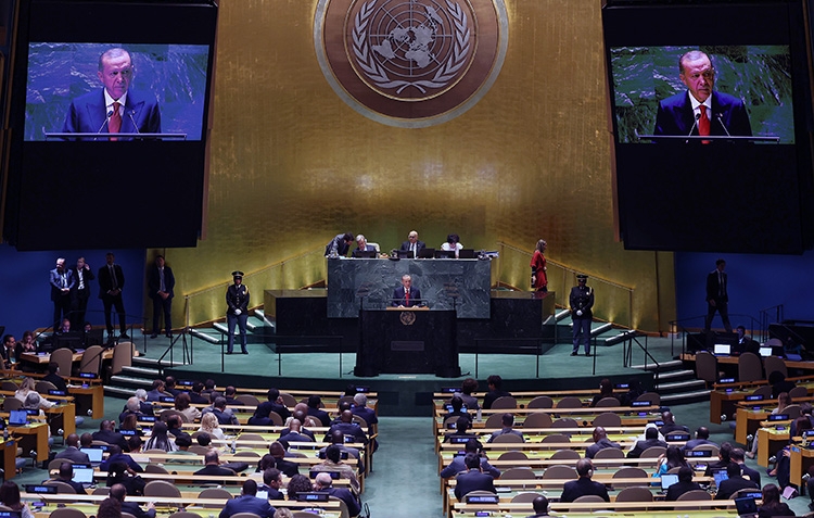 Cumhurbaşkanı Erdoğan, BM Genel Kurul Salonu'nda BM'nin 78. Genel Kurulu görüşmelerinde katılımcılara hitap etti.