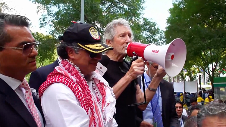 Petro ve Pink Floyd'un kurucularından İngiliz müzisyen Roger Waters, Times Meydanı’nda gerçekleştirilen Filistin'e destek, İsrail'i protesto eylemine katıldı.