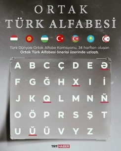 Türk Akademisi, Türk Devletleri Teşkilatının (TDT) kurduğu Türk Dünyası Ortak Alfabe Komisyonu'nun 34 harften oluşan Ortak Türk Alfabesi önerisi üzerinde uzlaştığını duyurdu.