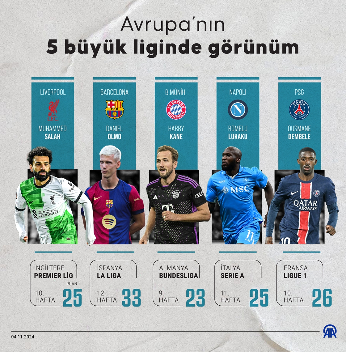 Avrupa'nın 5 büyük futbol ülkesi arasında yer alan Almanya , Fransa , İngiltere , İspanya ve İtalya futbol liglerinden heyecan devam ediyor.