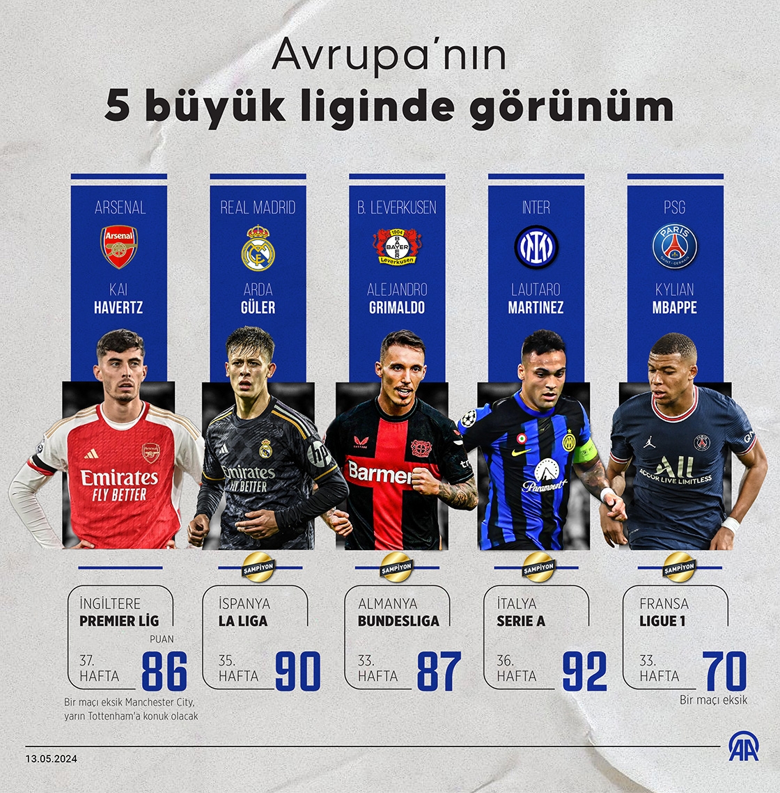 Avrupa'nın 5 büyük futbol ülkesi Almanya, Fransa, İngiltere, İspanya ve İtalya'daki maçlara hafta sonu devam edildi.