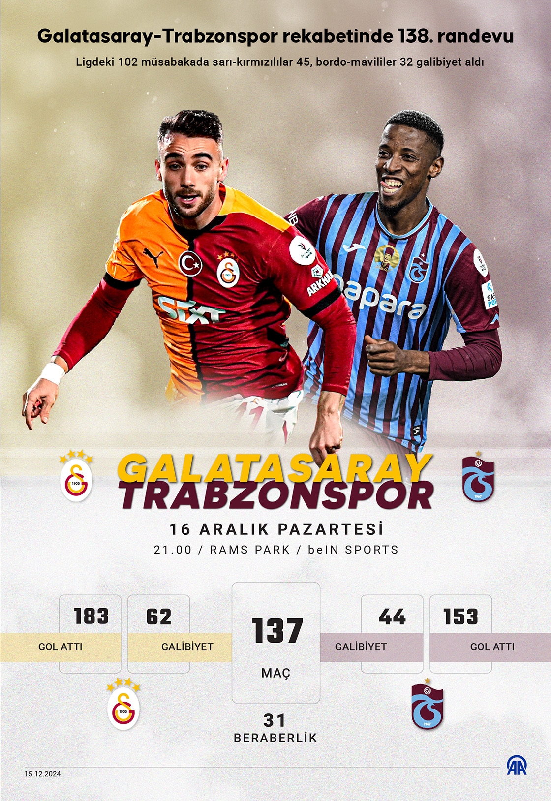 Galatasaray, Trendyol Süper Lig'in 16. haftasında Trabzonspor'u ağırlayacak. (Grafik: Ufuk Celal Güzel/AA)