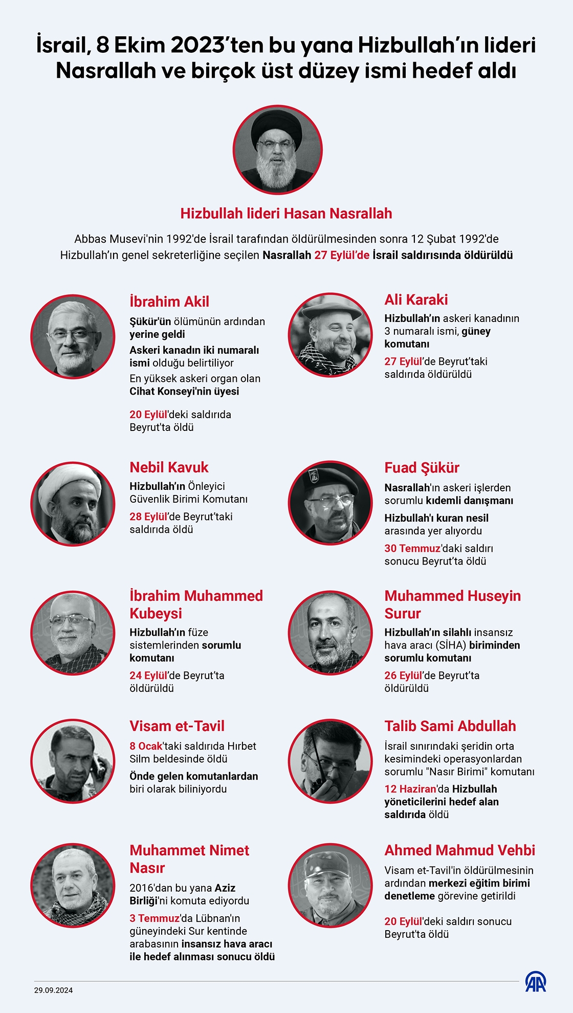 İsrail, 8 Ekim 2023’ten bu yana Hizbullah’ın lideri Nasrallah ve birçok üst düzey ismi hedef aldı.