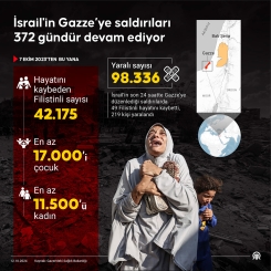 İsrail'in son 24 saatte Gazze’ye düzenlediği saldırılarda 49 Filistinli hayatını kaybetti, 219 kişi yaralandı. (Grafik: Kemal Delikmen/AA)