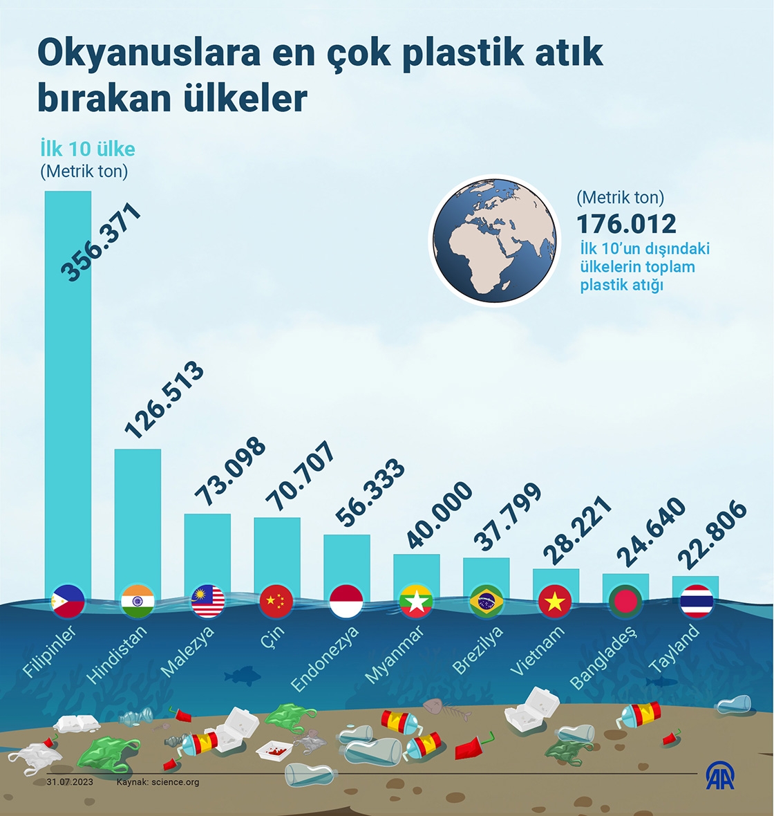 Okyanuslara en çok plastik atık bırakan ülkeler