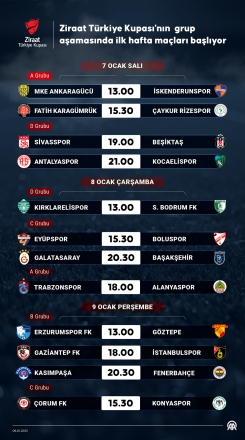 Ziraat Türkiye Kupası'nın grup aşamasında ilk hafta maçları başlıyor. Bugün A ve D grubu müsabakaları oynanacak.