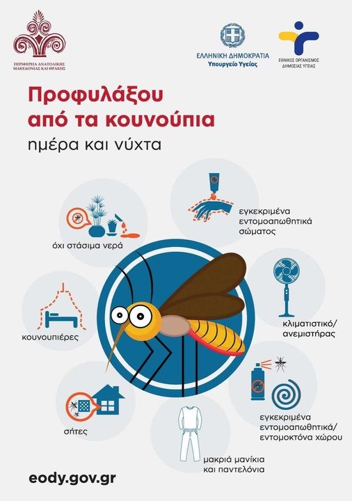 Sağlık Bakanlığı, Ulusal Halk Sağlığı Kurumu (EODY) ve Doğu Makedonya ve Trakya Eyaleti, vatandaşları sivrisineklere karşı koruma konusunda uyardı.