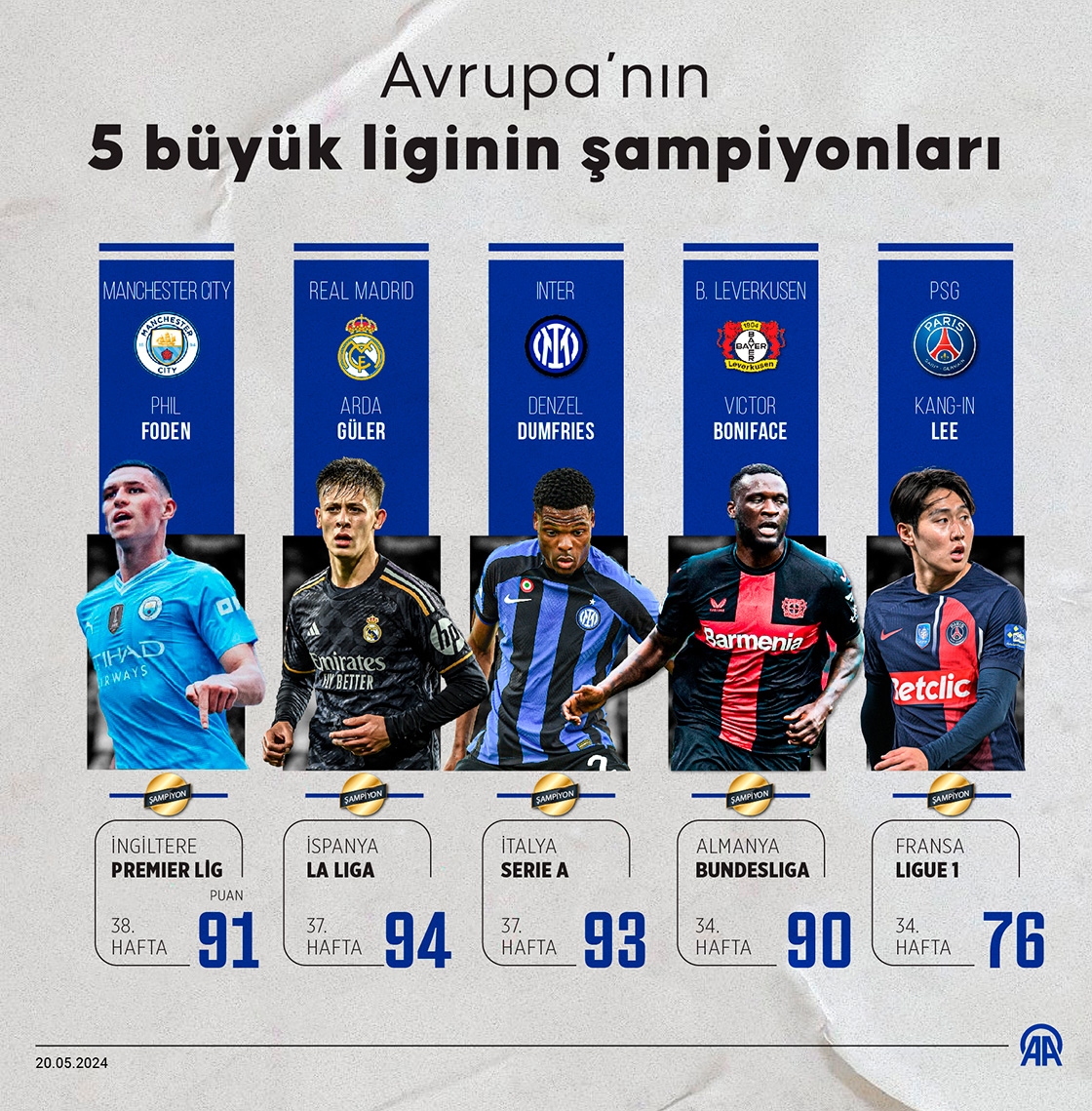 Avrupa'nın 5 büyük futbol ülkesi İngiltere (Premier Lig), İspanya (LaLiga), İtalya (Serie A), Almanya (Bundesliga) ve Fransa'daki (Ligue 1) maçlara hafta sonu devam edildi.