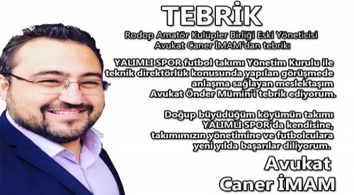 "YALIMLI SPOR futbol takımı Yönetim Kurulu ile teknik direktörlük konusunda yapılan görüşmede anlaşma sağlayan meslektaşım Avukat Önder Mümin’i tebrik ediyorum.