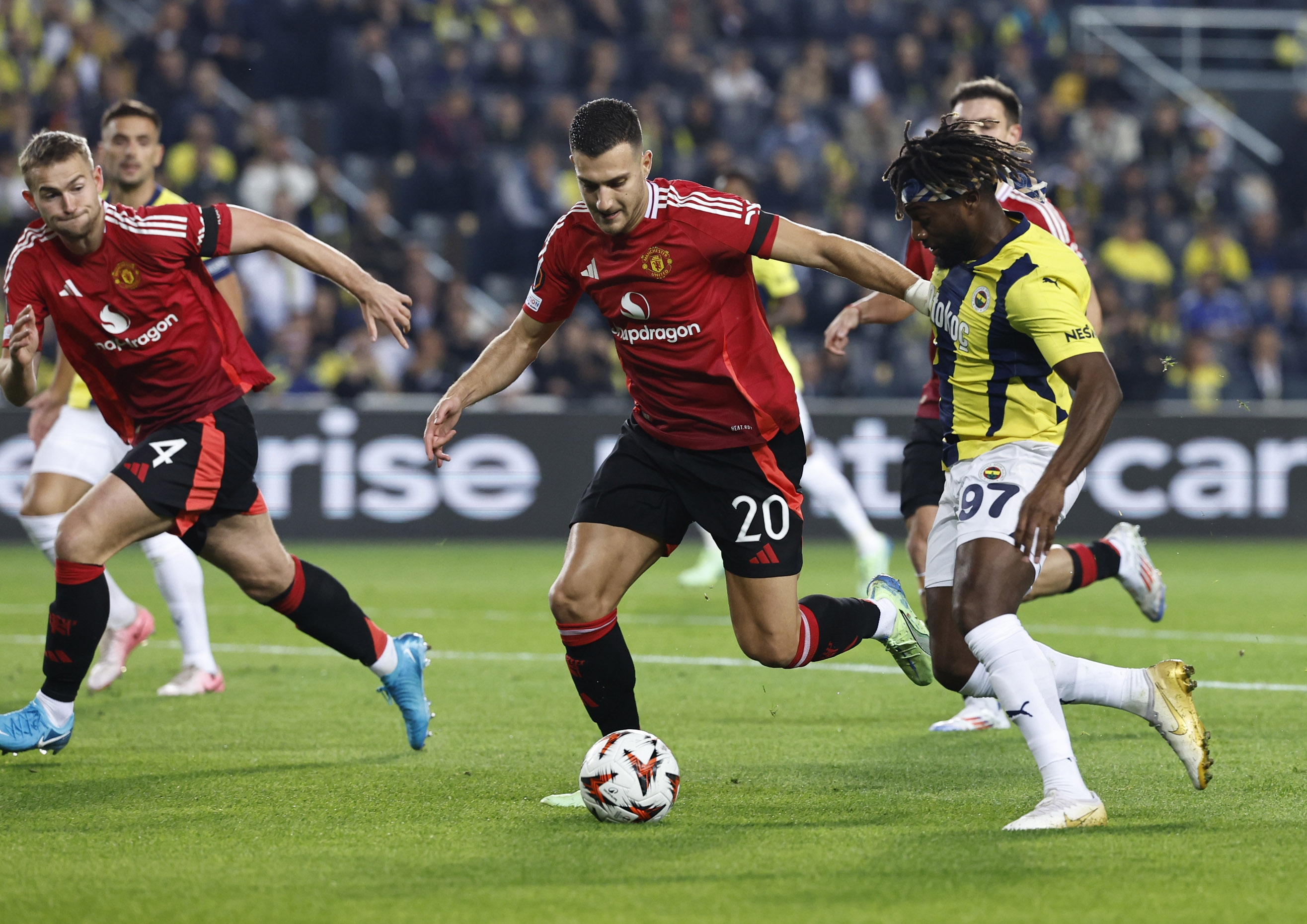 23. dakikada Fenerbahçe gole yaklaştı. Fred'in uzun pasında soldan ceza sahasına giren Szymanski'nin kale sahasına çevirdiği ortada kaleci Onana'nın sektirdiği top boşta kaldı. Bu pozisyonda Tadic bekletmeden vuruşunu yaptı ancak Ugarte kayarak müdahalesinde sırtıyla gole engel oldu.