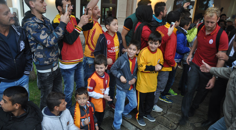 Maç öncesi ısınmak için sahaya çıkan futbolcuları çağıran Batı Trakyalı taraftarlar, özellikle Gümülcine Susurköylü hemşehrileri teknik direktör Hamza Hamzaoğlu’nu adeta bağrına bastılar ve büyük ilgi gösterdiler.