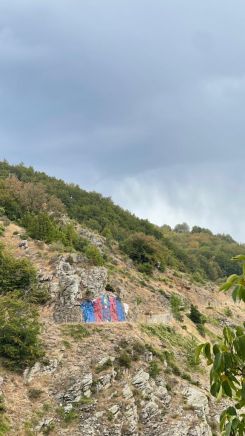 Taş boyama geleneğin bu yıl da devam etti. Geçen sezon Türkiye Spor Toto Süper Ligi'ni Trabzonspor'un şampiyon tamamlaması nedeniyle bu sene taşlar bordo maviye boyandı.