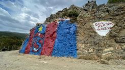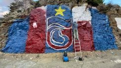 Kozlukebir Belediyesine bağlı Hebilköy'de taş boyama geleneği devam etti. Köyün karşısında bulunan taşlar geçen senenin şampiyonu Trabzonspor'un bordo mavi rekleriyle boyandı.
