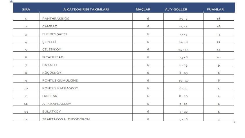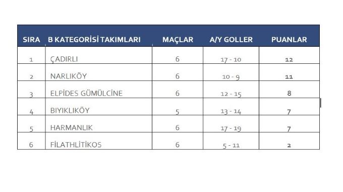 Hafta sonu A Kategori takımları 6. hafta maçlarında karşı karşıya geldi. B Kategorisi takımları ise 7. hafta maçlarını geride bıraktı. İki kategoride oynanan maçlar ve alınan sonuçların ardından oluşan puan durumu şu şekilde oldu: