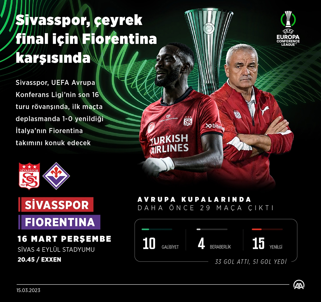 Sivasspor, UEFA Avrupa Konferans Ligi’nin son 16 turu rövanşında, ilk maçta deplasmanda 1-0 yenildiği İtalya’nın Fiorentina takımını konuk edecek.